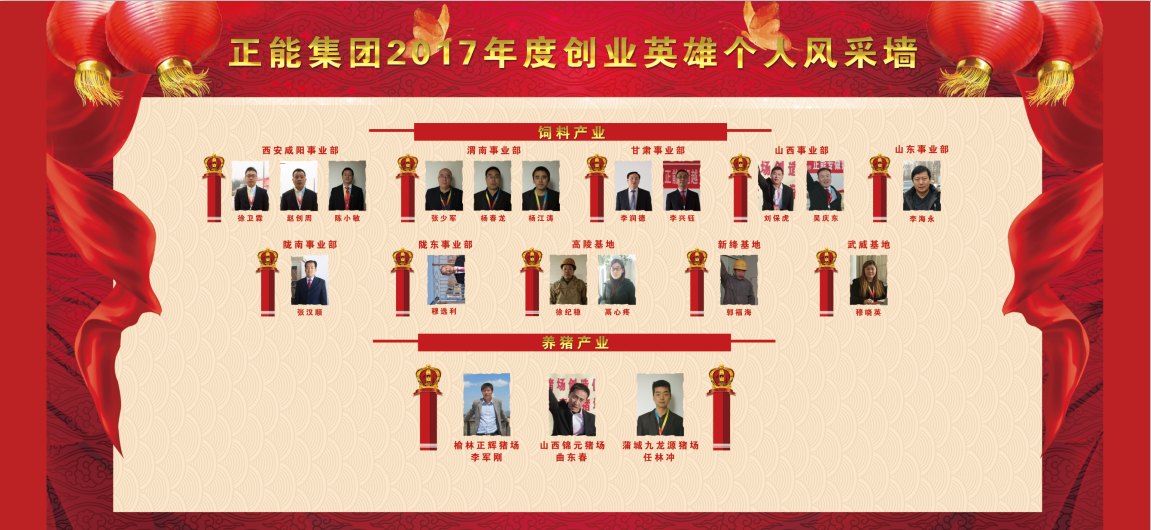 2018年1月23日,正能集團(tuán)2017年度創(chuàng)業(yè)工作年會(huì)王者之師頒獎(jiǎng)盛典在炎帝故里寶雞萬(wàn)福國(guó)際酒店拉開(kāi)帷幕。正能集團(tuán)各事業(yè)部英雄戰(zhàn)將200余人歡聚一堂,共襄盛會(huì)。引爆能量,創(chuàng)新創(chuàng)業(yè)! 榜樣催人奮進(jìn),業(yè)績(jī)昭著千秋。為表彰優(yōu)秀,樹(shù)立典型,激勵(lì)全體創(chuàng)業(yè)將帥披荊斬棘再接再厲,分別頒發(fā)創(chuàng)業(yè)英雄個(gè)人獎(jiǎng)和創(chuàng)業(yè)英雄團(tuán)隊(duì)獎(jiǎng)、永爭(zhēng)第一金獎(jiǎng)三個(gè)獎(jiǎng)項(xiàng)。“2017創(chuàng)業(yè)英雄獎(jiǎng)” 19 名 秦西事業(yè)部 趙創(chuàng)周 陳小敏 陜南事業(yè)部 徐衛(wèi)霖 渭南事業(yè)部 張少軍 楊春龍 楊江濤 甘肅事業(yè)部 宋正甫 李興鈺 山西事業(yè)部 吳慶東 隴東事業(yè)部 穆選利 隴南事業(yè)部 張漢順 山東營(yíng)銷公司 李海永 高陵基地 徐紀(jì)穩(wěn) 鬲心疼 新絳基地 郭福海 武威基地 穆曉英