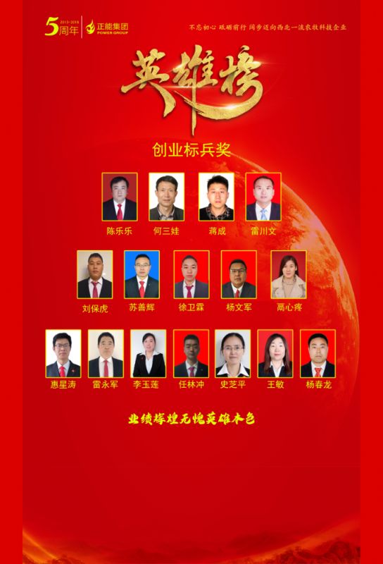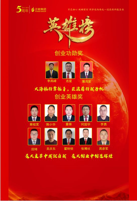 正能集團創業五周年慶典創業英雄榜
