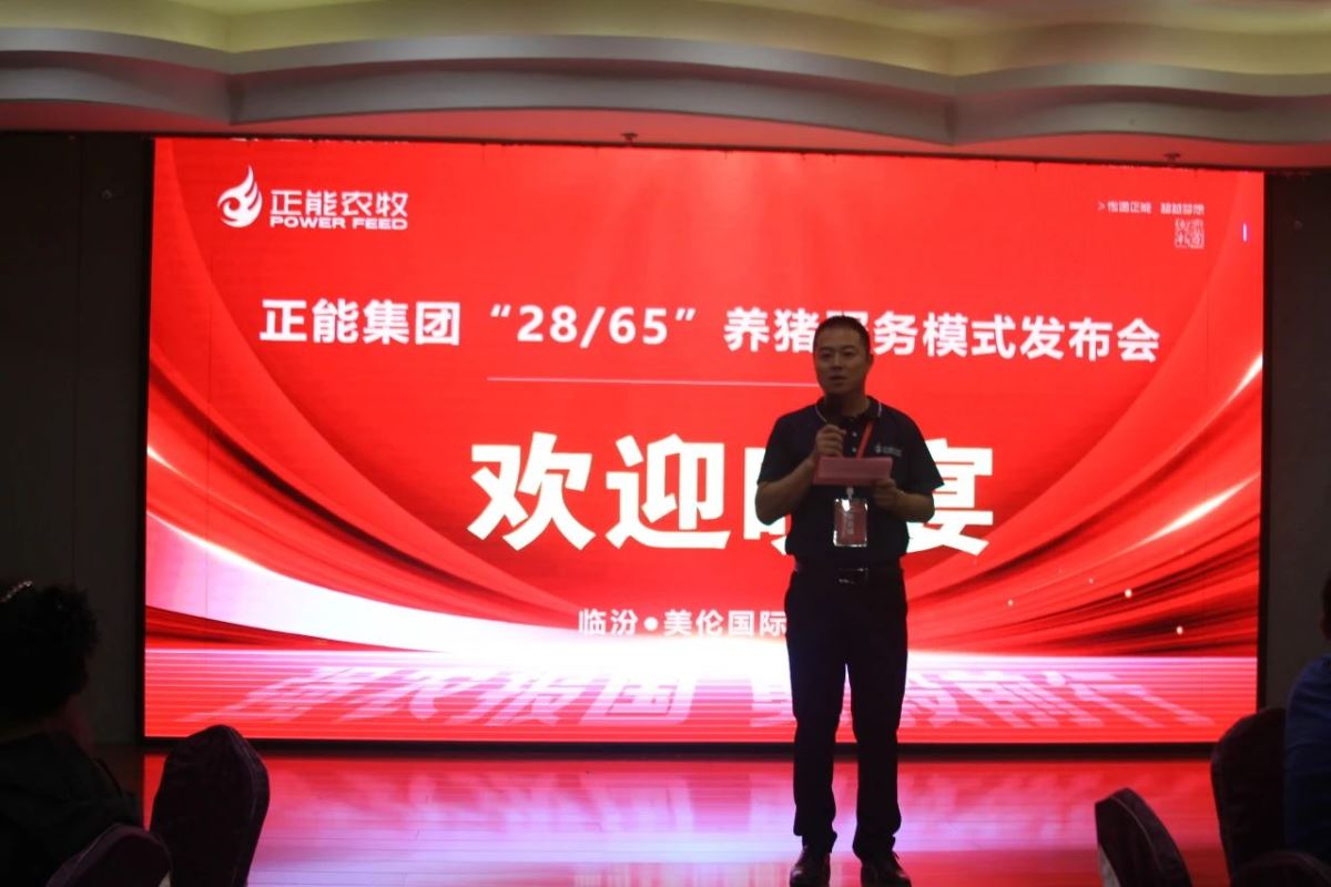 正能集團(tuán)創(chuàng)新合作社總經(jīng)理張濤老師上臺致開幕歡迎詞,熱烈歡迎各位養(yǎng)殖企業(yè)家百忙之中蒞臨參加正能集團(tuán)“28/65”養(yǎng)豬服務(wù)模式發(fā)布會,本次大會目的在于幫助大家明晰我國養(yǎng)豬業(yè)現(xiàn)狀及趨勢、明晰養(yǎng)豬完全成本并對標(biāo)、明晰增效降本技術(shù)控制要點(diǎn)、明晰我們山西區(qū)技術(shù)服務(wù)部如何協(xié)助大家在增效降本方面有那些具體策略和措施。衷心的希望通過本次會議能夠?qū)Υ蠹矣兴鶐椭軌驗(yàn)榇蠹以谠鲂Ы当痉矫尕暙I(xiàn)價值!希望大家收獲滿滿。